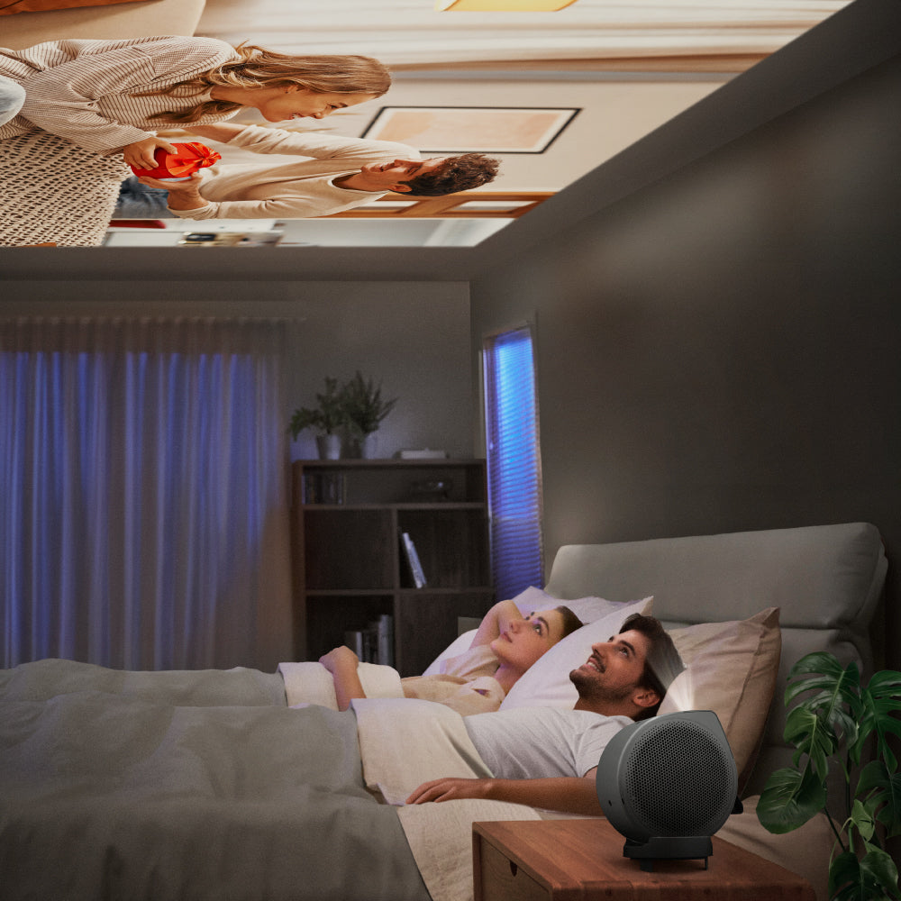Mit dem Ceiling Cinema Sound Mode gehört das Problem blockierter Subwoofer-Töne, wie es bei nach oben neigenden Projektoren oft vorkommt, der Vergangenheit an. Unsere sorgfältig abgestimmten Audio-Einstellungen sorgen für optimale Klangqualität – egal, ob du liegst oder sitzt.